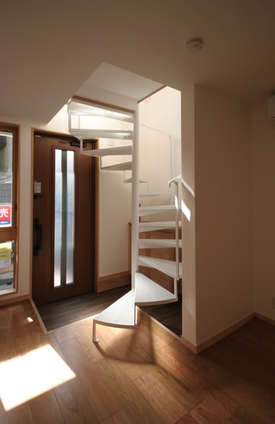 白いシンプルな構成の螺旋階段。
