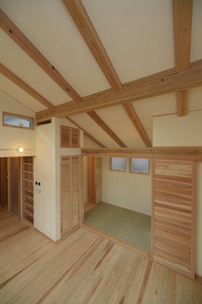 梁以外にも、床、建具などにも杉の無垢材を