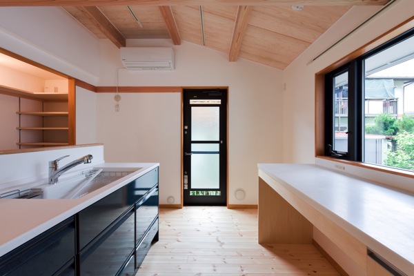 シンクで作業をしながら、ダイニングへ目を配ることが出来る。